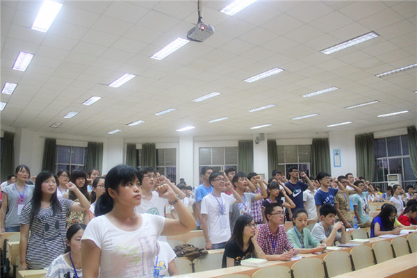 为了欢迎我院新党员的加入和加强党支部的工作。于6月20日晚七点整在五教2-3举行了新党员宣誓大会暨期末党员大会。出席会议的人有党支部负责人曾竟兴和11、12、13级党员以及41名新党员