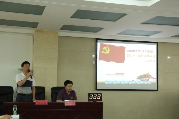 6月27日下午2:30,我院于土木楼201顺利举行迎七一“党建·评估·认证”知识竞赛。全体院领导和教职工参加本次活动,比赛分为道路与桥梁、行政学工实验、建工、地下、市政建环和工力工管六支代表队。