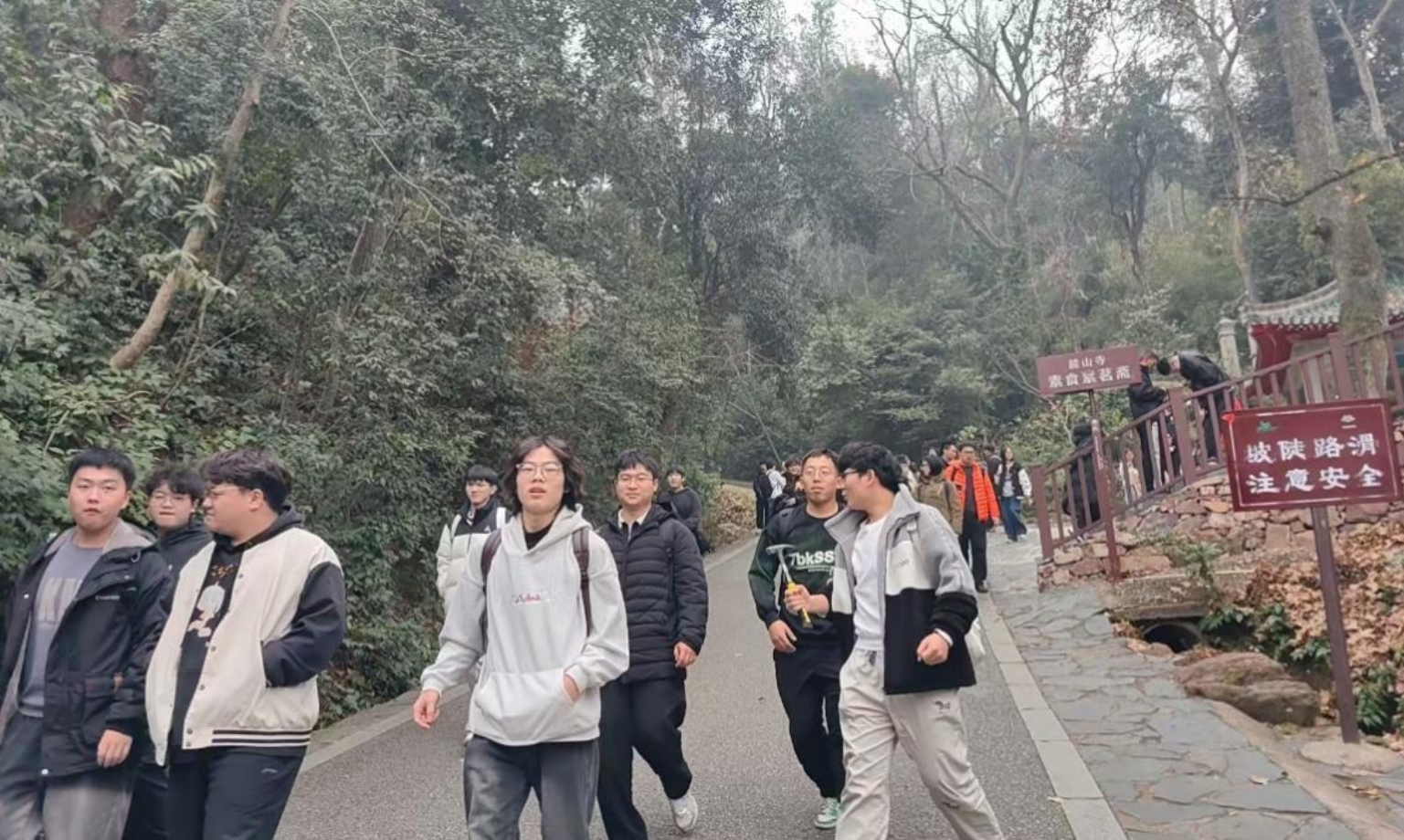 12月30日,实习队伍首站前往长沙大王山某滑坡现场,分组开展滑坡体形态调查测绘,记录滑坡范围、滑动面特征等关键信息,学习分析滑坡成因与稳定性影响因素。随后,队伍前往岳麓山重点开展地质构造识别与测绘实践,指导老师结合岳麓山典型砂岩地层、褶皱构造现场讲解地层岩性、构造形成机理,学生们使用专业仪器测量岩层产状,深入理解地壳运动对地貌的塑造作用。校院督导全程跟进,对现场实操环节进行细致点评,着重强调野外勘察的规范性与安全性。